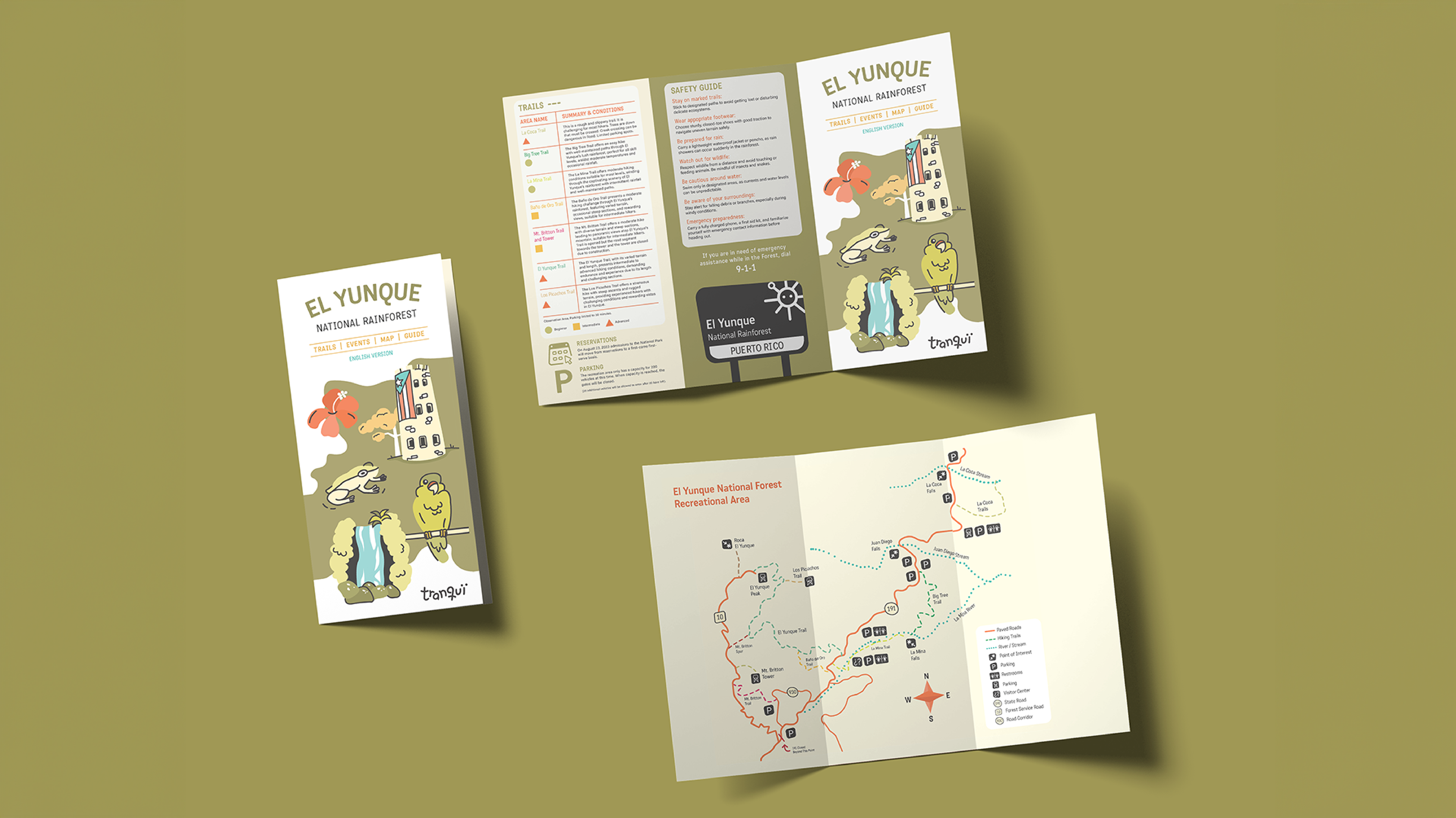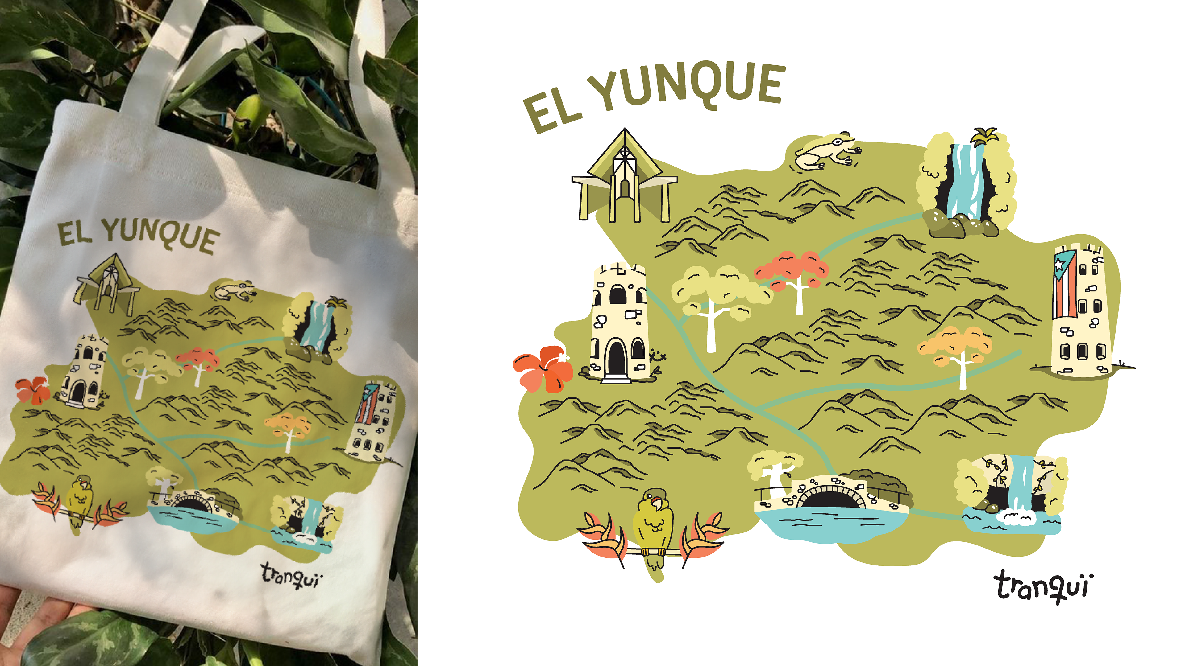 Tranqui aims to rebrand El Yunque National rainforest by infusing it with a vibrant and fun aesthetic, enticing people to visit and explore the natural beauty it has to offer. Through the exploration of one's "Inner Boricua," Tranqui seeks to celebrate Puerto Rican culture and heritage while promoting environmental conservation and sustainable tourism practices. The objective is to create a lively and welcoming atmosphere that encourages visitors to immerse themselves in the unique sights, sounds, and experiences of El Yunque, fostering a sense of tranquility and connection with nature.